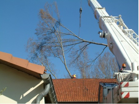 Wanneer we klimmend of met een hoogwerker een boom slopen komt het soms voor dat er geen plaats is om de takken en stam af te vangen. Bijvoorbeeld als een boom in krappe binnentuin staat zoals we wel eens mee maken in de grote steden. Ook komt het voor dat er misschien wel ruimte is om het hout neer te laten maar levert het dan logistieke problemen op voor de afvoer. In zulke gevallen kunnen we gebruik maken van een telekraan. Hierbij laten een boom geheel of in delen ophijsen en wegdraaien met de kraan.